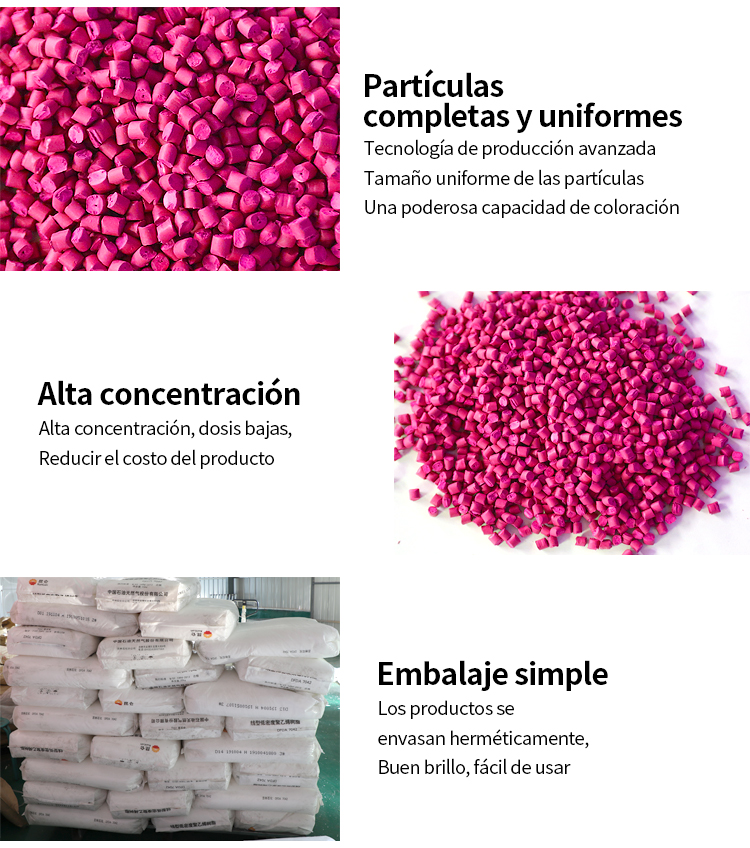 PP PE Rojo, rosa, amarillo, azul oscuro, blanco, verde, gris masterbatch moldeo por inyección plástico, rosa masterbatch
