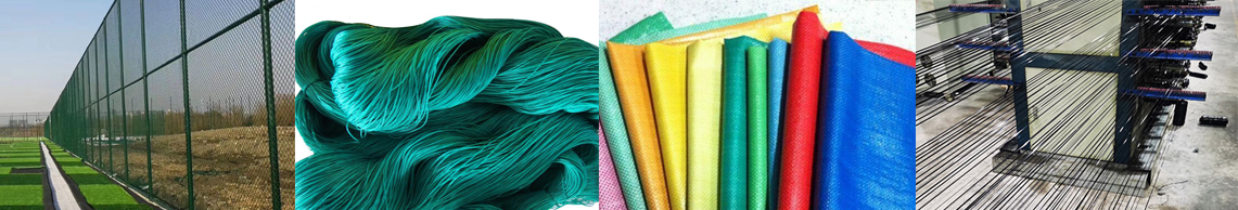 Produits en fils plats, rubans similaires, filets de protection, sacs pour chiens, cordes, fils de tapis, tissus pp / PE, sacs tissés en plastique, filets tissés en plastique, fils ronds en plastique, fils de ruban, filets de sécurité des bâtiments, filets de clôture, fils de pêche, filets de pêche, cordes, etc.