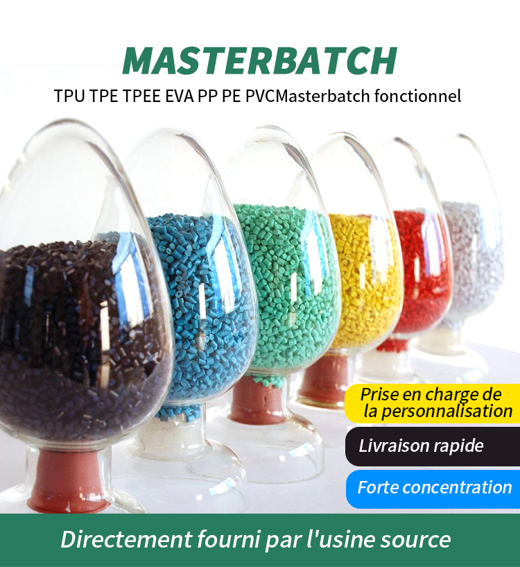 2: Mélanger les matières premières et le Masterbatch avec un mélangeur en proportion de la quantité. Étape 3: organiser la production comme d'habitude.
