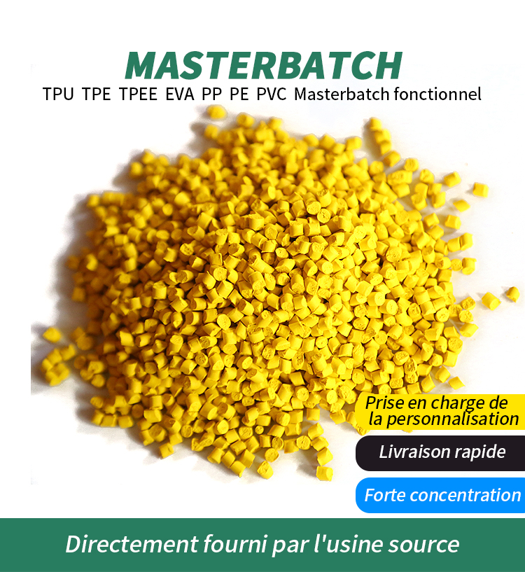 2: Mélanger les matières premières et le Masterbatch avec un mélangeur en proportion de la quantité. Étape 3: organiser la production comme d'habitude.