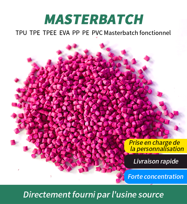 2: Mélanger les matières premières et le Masterbatch avec un mélangeur en proportion de la quantité. Étape 3: organiser la production comme d'habitude.